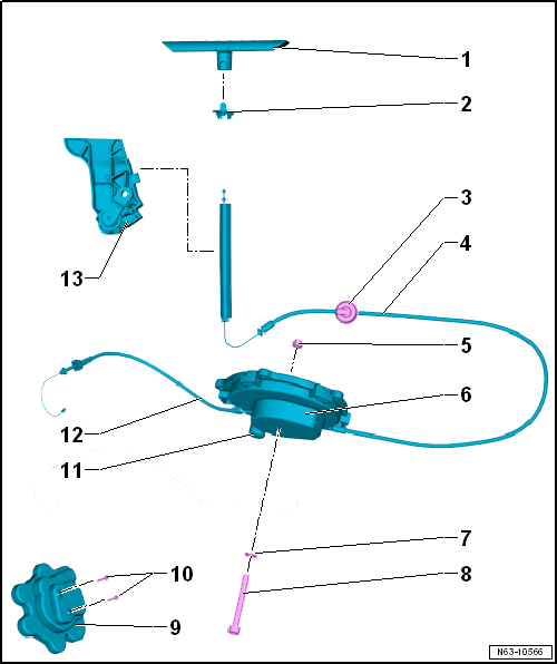 Volkswagen Golf Service & Repair Manual: Assembly overview - Bowden cable