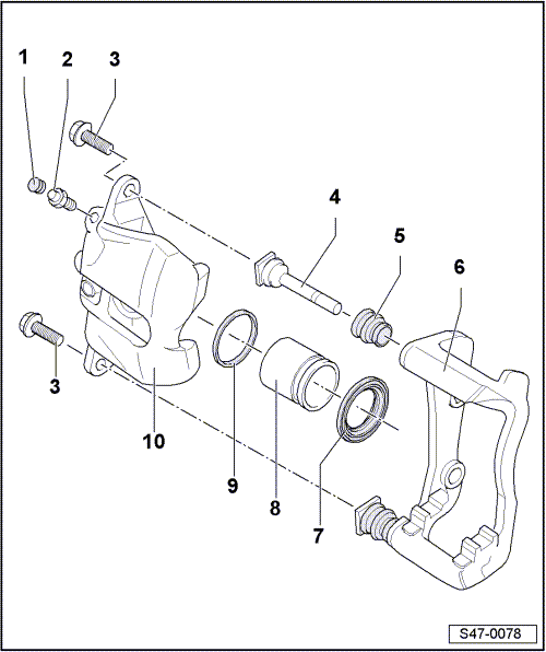 Volkswagen Golf Service & Repair Manual: Assembly overview - brake caliper (PC57 brakes)