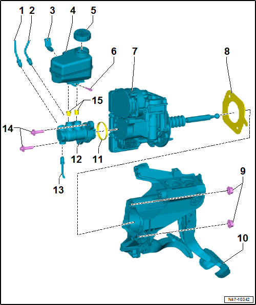 Volkswagen Golf Service & Repair Manual: Assembly overview - brake servo/brake master cylinder, LHD vehicles