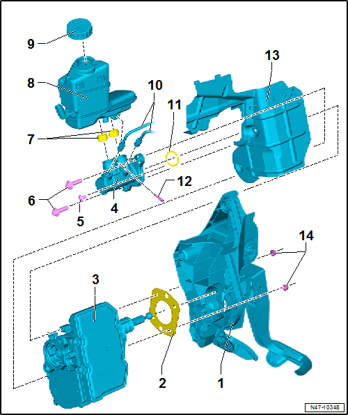 Volkswagen Golf Service & Repair Manual: Assembly overview - brake servo/brake master cylinder, RHD vehicles