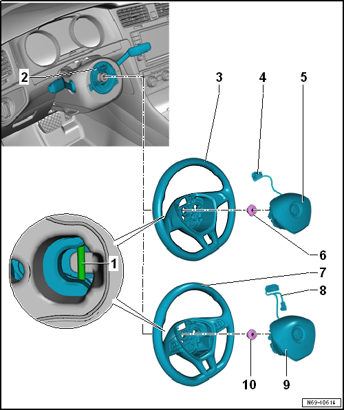 Volkswagen Golf Service & Repair Manual: Assembly overview - driver side airbag