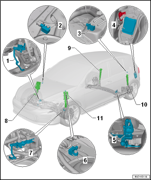 Volkswagen Golf Service & Repair Manual: Assembly overview - electronically controlled damping system, torsion beam