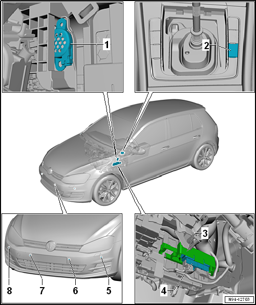 Volkswagen Golf Service & Repair Manual: Assembly overview - front parking aid, LHD vehicles