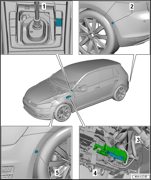 Volkswagen Golf Service & Repair Manual: Assembly overview - park assist steering, LHD vehicles