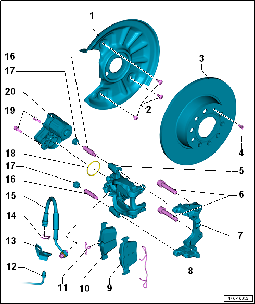 Volkswagen Golf Service & Repair Manual: Assembly overview - rear brakes