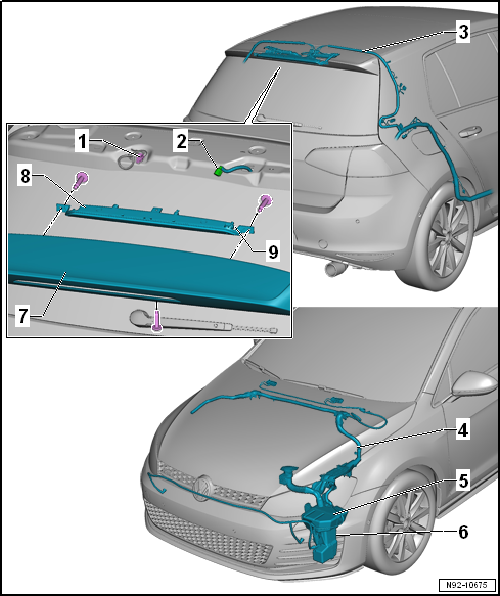Assembly overview - rear window washer system, Golf