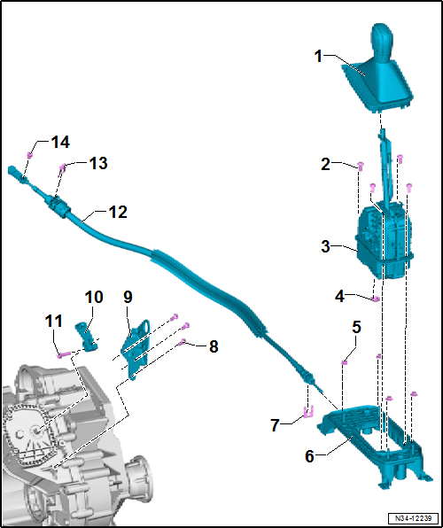 Removing and installing selector lever handle, Golf 2013 ►, Golf Estate