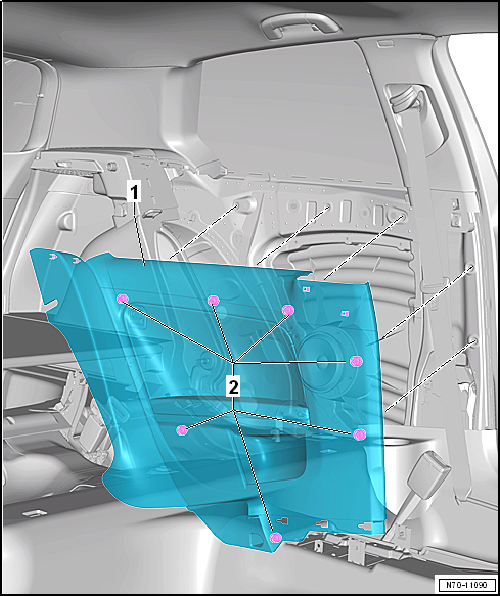 Note| The illustration shows the side trim panel on the left side. The right-hand side is similar (mirror image of left-hand side). |