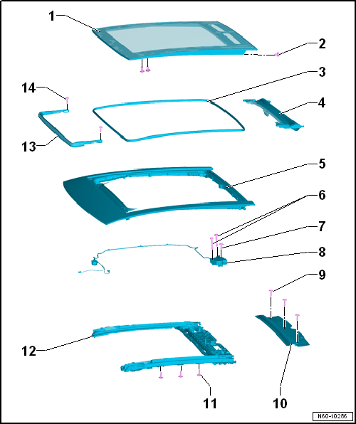 Volkswagen Golf Service & Repair Manual: Assembly overview - sliding sunroof