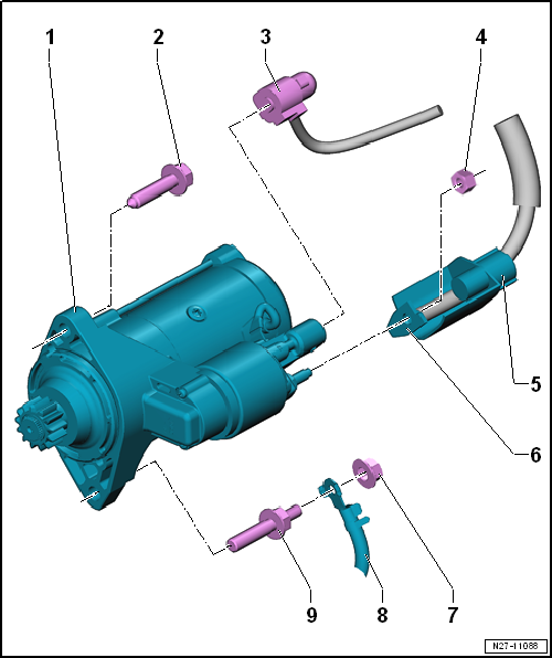 Volkswagen Golf Service & Repair Manual: Assembly overview - starter, vehicles with dual clutch gearbox (DQ250-6F)