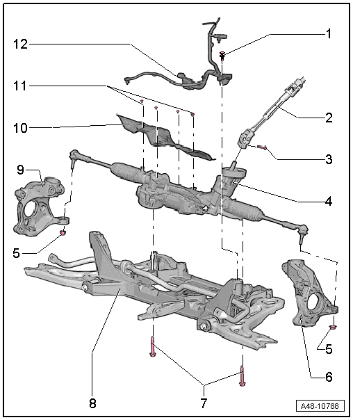 Volkswagen Golf Service & Repair Manual: Assembly overview - steering rack, left-hand drive