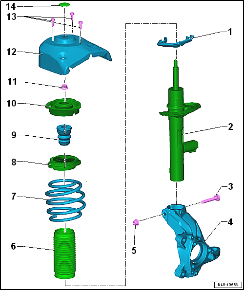 Volkswagen Golf Service & Repair Manual: Assembly overview - suspension strut, upper suspension link