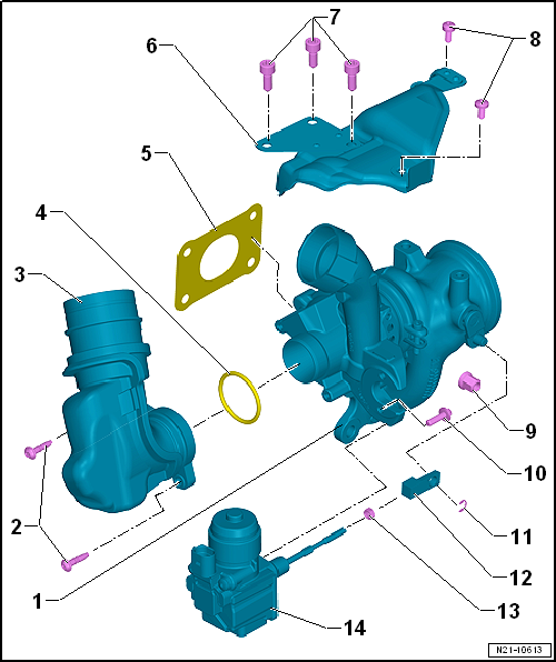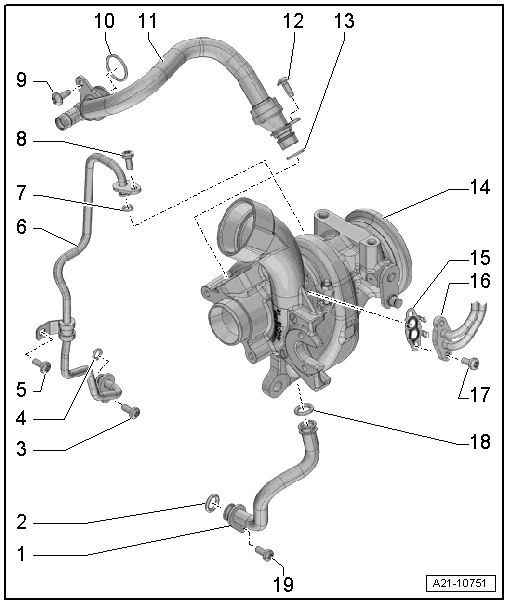 Removing and installing turbochargerOverview of fitting locations - components not located in passenger
