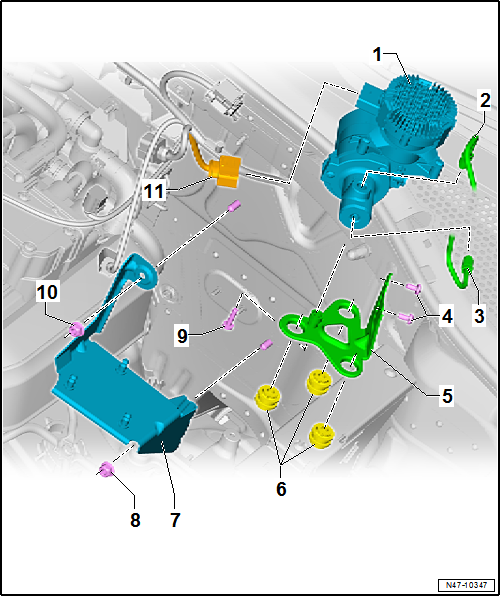 Volkswagen Golf Service & Repair Manual: Assembly overview – Brake system pressure accumulator -VX70-, RHD vehicles