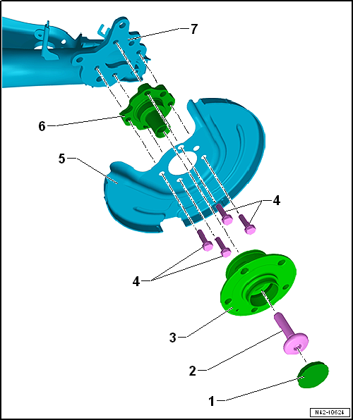 Volkswagen Golf Service & Repair Manual: Assembly overview - wheel bearing assembly, torsion beam axle