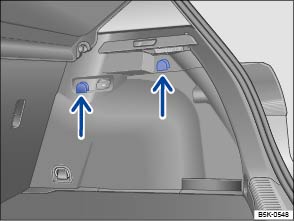 and safety warnings There may be a bag hook on upper left and right-hand side of the luggage compartment (arrows).