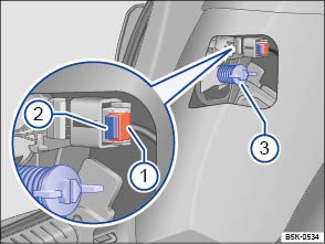 | 4. | Pull out the fuse . Press the catches ② on the connector and pull out the connector. |