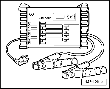 Volkswagen Golf Service & Repair Manual: Charging battery in refresh charge mode with battery charger -VAS 5903-