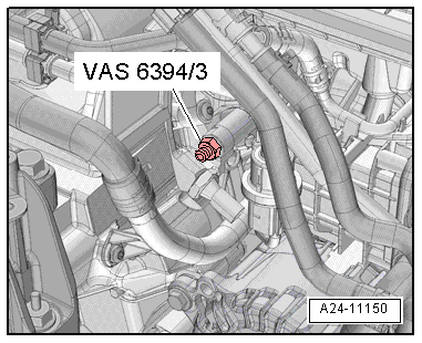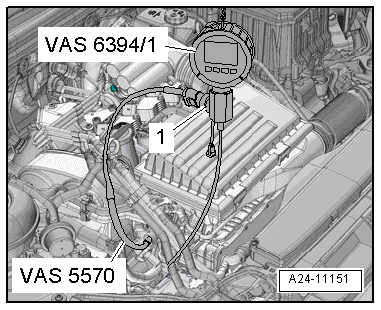 pressure sender - G247- into tester -VAS 6394/1-. |