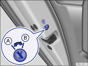 Fig. 35 In the right rear door: childproof lock Ⓐ switched off, Ⓑ switched on