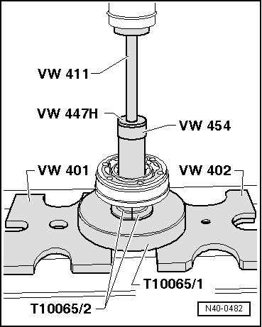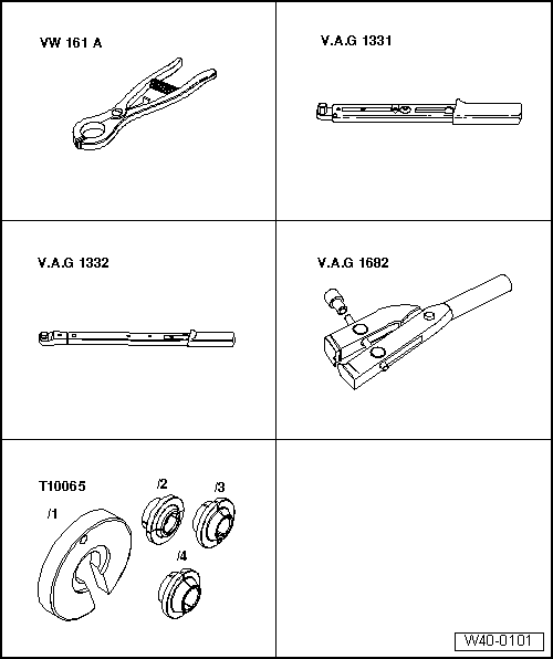 Position clamp tensioner -V.A.G 1682- as shown in diagram.