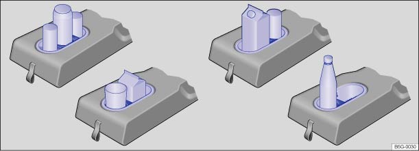 Fig. 120 Drink holder in rear centre armrest: examples of ways to adjust drink holder for different purposes