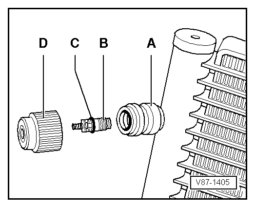 Volkswagen Golf Service & Repair Manual: Evacuation and charging valve with Schrader valve