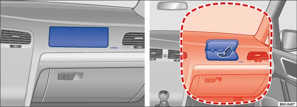 Fig. 71 Location and deployment zone of the front passenger front airbag