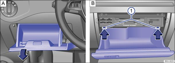Fig. 228 Fuse box cover in the dash panel: A: left-hand drive vehicle, to the left-hand side of the steering wheel B: right-hand drive vehicle, on the driver side