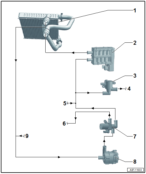 | To ensure that the coolant heated by the -Z115- is conveyed through