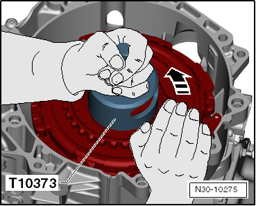 Install clutch with puller -T10373- in gearbox, as shown in