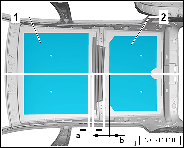 without sliding sunroof = 25 ± 1 mm from rear sheet-metal edge. |