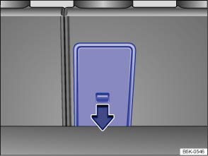 The load-through hatch can also be opened from the luggage compartment. Push down the release lever in the direction of the arrow and push the cover forwards .