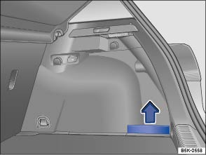 Additional stowage compartments are located in the sides of the luggage compartment. The side walls can be removed by pulling them up and out in the direction of the arrow . This enables you to stow larger items in the luggage compartment.