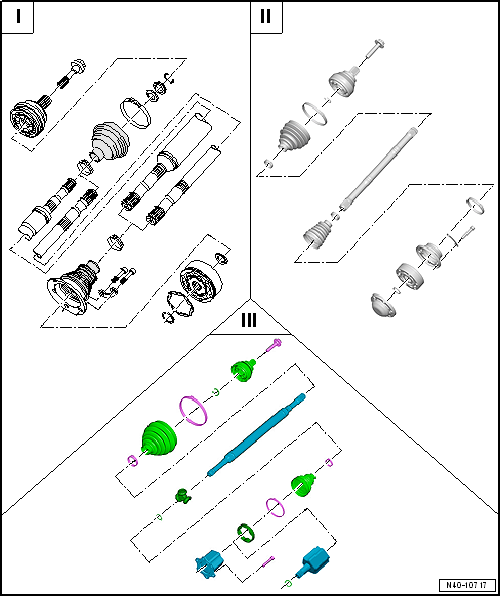 | II - | → Chapter „Assembly overview - drive shaft, constant velocity joint VL107“ |
