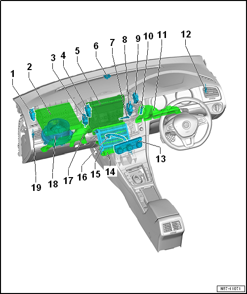 Volkswagen Golf Service & Repair Manual: Overview of fitting locations - components inside of front passenger