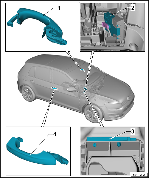 Volkswagen Golf Service & Repair Manual: Overview of fitting locations - front keyless entry system, RHD vehicles