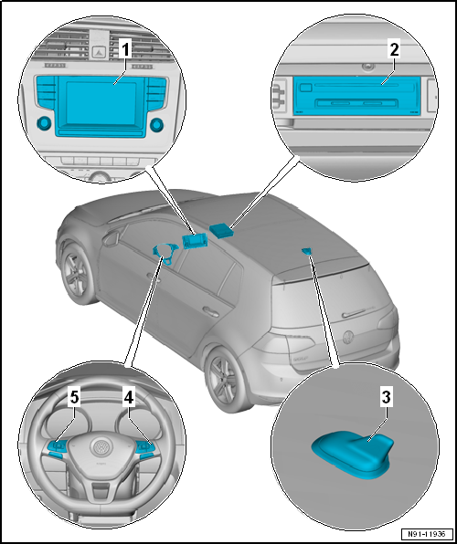 Volkswagen Golf Service & Repair Manual: Overview of fitting locations - navigation system