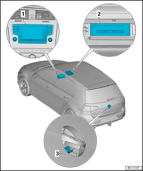 Volkswagen Golf Service & Repair Manual: Overview of fitting locations - reversing camera system