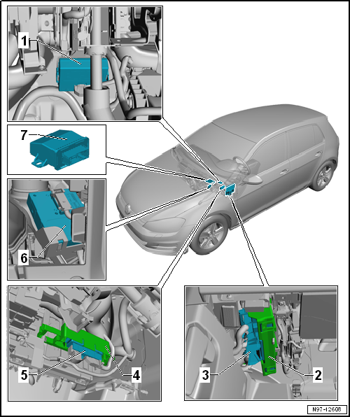 Volkswagen Golf Service & Repair Manual: Overview of fitting locations – control units, front of LHD vehicles