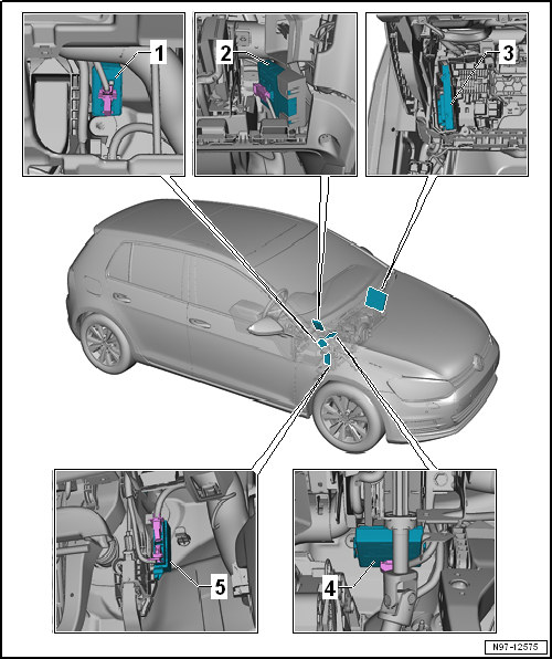 Volkswagen Golf Service & Repair Manual: Overview of fitting locations – control units, front of RHD vehicles
