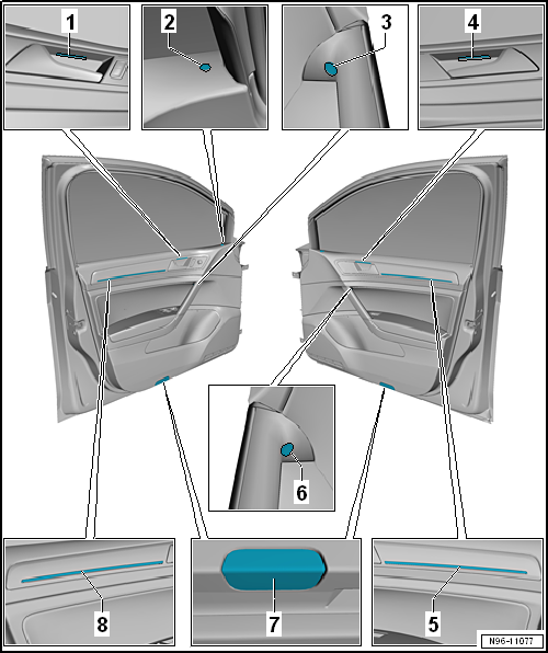 Volkswagen Golf Service & Repair Manual: Overview of fitting locations – lights in front doors