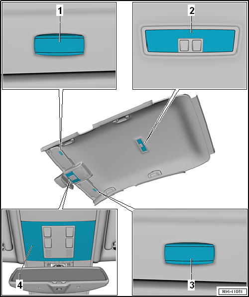 Volkswagen Golf Service & Repair Manual: Overview of fitting locations – lights in roof trim