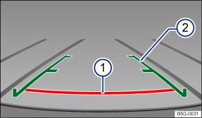 Fig. 157 On the screen: static orientation lines for the parking space behind the vehicle