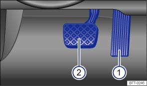 Fig. 133 Pedals in vehicles with an automatic gearbox: ① accelerator, ② brake pedal