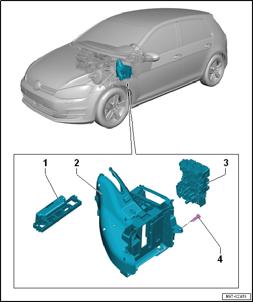 Volkswagen Golf Service & Repair Manual: Relay carrier, fuse carrier in dash panel/A-pillar, LHD vehicles