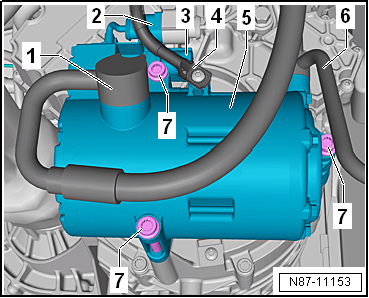 Volkswagen Golf Service & Repair Manual: Removing air conditioner compressor from and installing to bracket, Golf GTE
