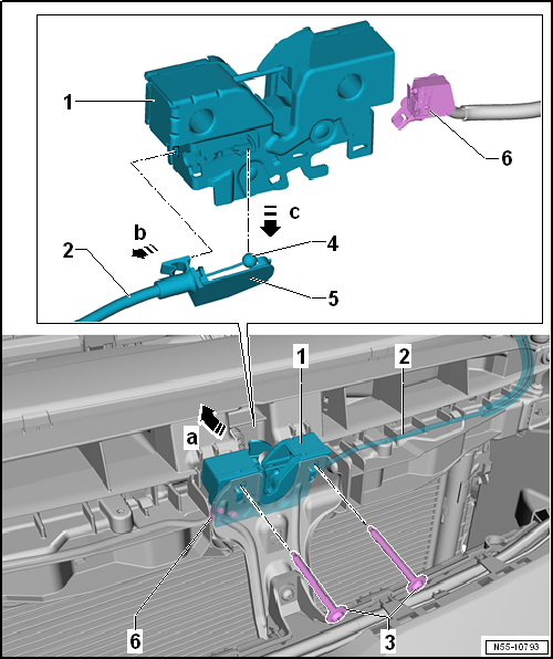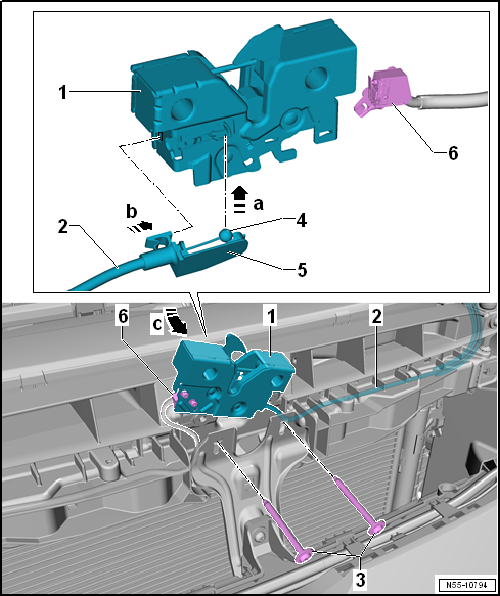 Volkswagen Golf Service & Repair Manual: Removing and installing bonnet lock, LHD vehicle