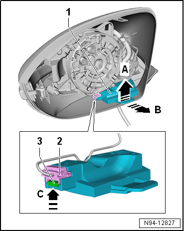 Volkswagen Golf Service & Repair Manual: Removing and installing entry light in exterior mirror