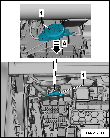 Volkswagen Golf Service & Repair Manual: Removing and installing front parking aid warning buzzer -H22-, RHD vehicles